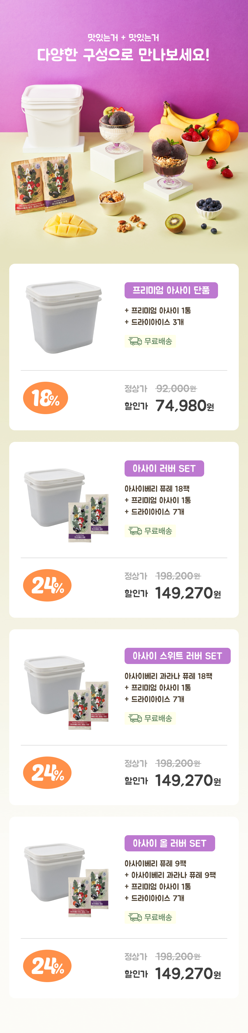 [2.9kg X 4통] 프리미엄 아사이 도매형 11.6kg